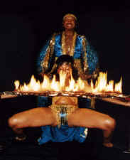 hour, or 20 piece ensemble of fire-limbo dancers, fire eaters,